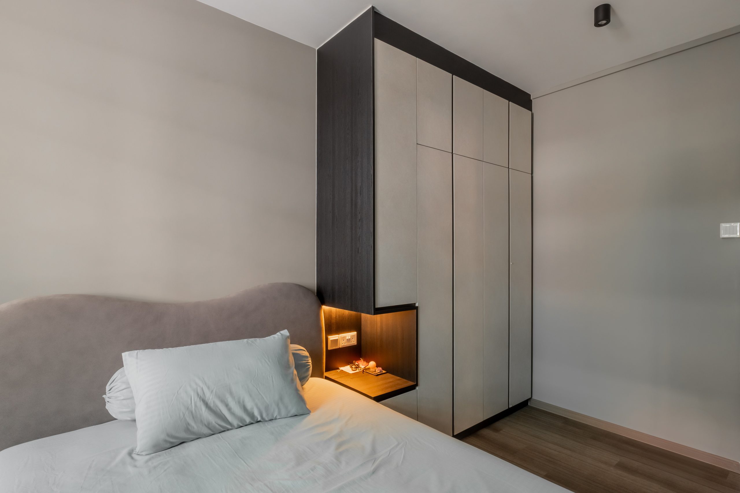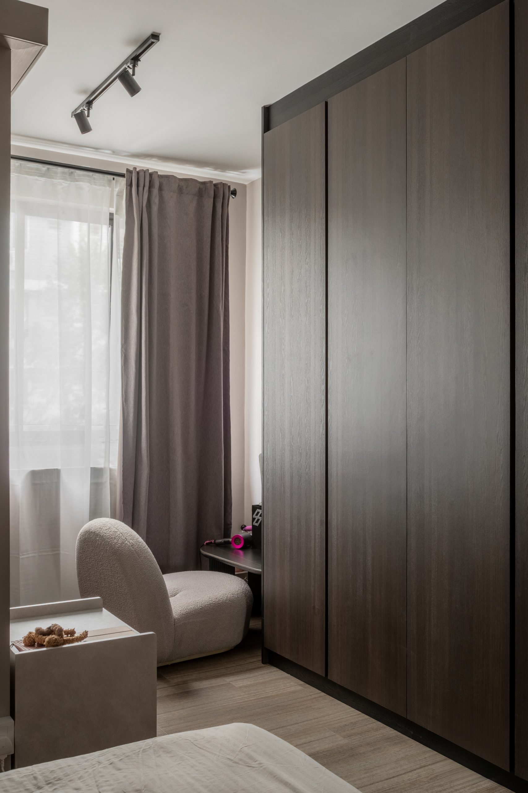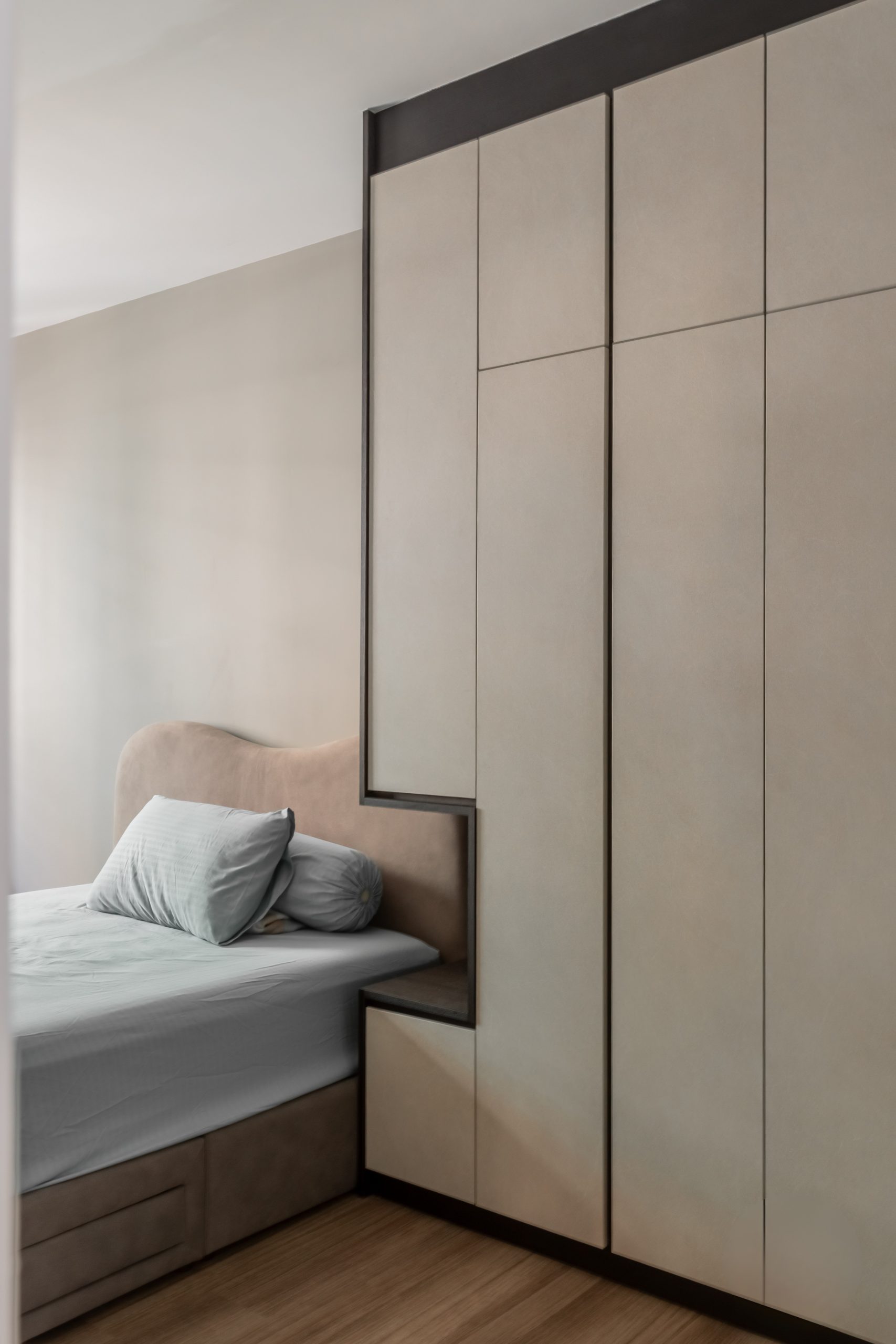 Storage was handled through carefully designed space-saving wardrobes, customised for each family member. These built-ins allow for generous storage while keeping rooms visually calm and uncluttered.